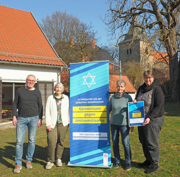 Pastor Andreas Ströble, Ingrid Krause, Antje Haeseler und Ina Vorwerk (von links nach rechts) laden zu Veranstaltung im Rahmen des Projektes "In Solidarität mit der jüdischen Gemeinschaft - Gemeinsam gegen Antisemitismus" ein.